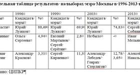 Сравнительная таблица результатов на выборах мэра Москвы в 1996-2013 гг.