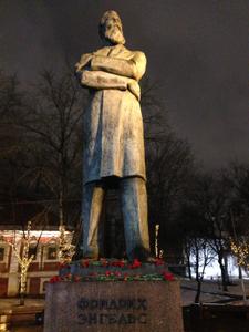Вечером 28 ноября коммунисты Ленинского райкома Москвы с флагами и растяжками собрались на митинг у памятника Ф.Энгельсу возле станции метро «Кропоткинская», чтобы почтить память одного из основоположников марксизма в 193-ю годовщину со дня его рождения. В мероприятии приняли участие член ЦК КПРФ Е.В. Козин, кандидаты в члены ЦК КПРФ В.В. Обуховский и Д.А. Парфенов, десятки членов партии и ее сторонников, а также многочисленные прохожие, присоединявшиеся к ним.