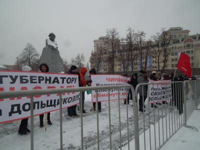 29 ноября снег зарядил уже с ночи. Дул сильный ветер, почти снося прохожих с ног. Было сыро и промозгло. Но дурная погода для коммунистов – не помеха. Члены Московского городского отделения КПРФ во главе с секретарем МГК КПРФ Е.В. Доровиным вышли к памятнику Карлу Марксу на Площади Революции, чтобы поддержать обманутых дольщиков, приехавших в столицу из Вологодской области.