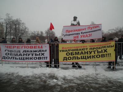Немногочисленные прохожие с удивлением смотрели на огромные красочные плакаты, рассказывающие о правовом беззаконии по отношению к людям, заплатившим честно заработанные деньги и так и не получившим квартиры.