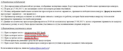 Подведение итогов пройдет в День города, 9 сентября. Авторам лучших работ обещаны «ультрасовременные» квадрокоптеры и камеры GoPro. Все призы описаны в положении о конкурсе. Коммунисты проверили стоимость призов с помощью сервиса «Яндекс.Маркет». По их данным, они доступны по ценам от 10,6 тыс. и до 43,9 тыс. рублей.