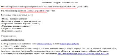 Претензии коммунистов связаны с конкурсом, который решили объявить столичные единороссы. Информация о нем размещена на официальном сайте партии власти. Конкурс запущен 27 июня этого года и ставит целью вовлечение молодежи в городскую общественно-политическую жизнь. Всем жителям Москвы в возрасте от 18 до 30 лет предлагается снять и прислать по электронной почте видеоролик длительностью 45–60 секунд, где отображались бы «возможности городской среды для развития молодежи в сфере спорта, творчества и науки».