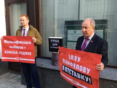 Флешмоб депутатов-коммунистов у здания Центризбиркома.