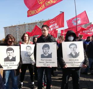 Видны транспарант «Их убил режим Ельцина» и портреты погибших. Все они, герои тех трагических дней. Разные. Молодые и старые. Веселые и серьезные. Их объединяет время и общая трагическая дата – дата ухода из жизни, которую отдали они за правое дело, защищая Советскую власть, свое будущее. Они погибли, но они живы в сердцах живущих, которые навсегда запомнили те трагические дни 1993-го.