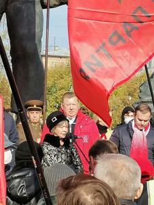 Перед собравшимися выступили депутаты Государственной Думы: заместитель Председателя ЦК КПРФ В.И. Кашин и член Президиума ЦК КПРФ Н.М. Харитонов, а также С.И. Кузьмина (мать Сергея Кузьмина, погибшего в октябре 1993 года).