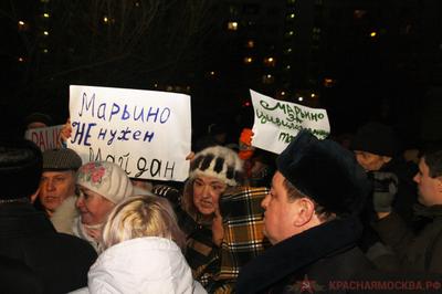 Начало встречи прошло под крики «жителей» «Рашкин, хватит врать!» и «Марьино не нужен Майдан». Оппоненты, поддерживающие «Единую Россию», мешали представителям КПРФ вести диалог с заинтересованными местными жителями, поднимали шум и применяли силу в отношении сторонников партии и представителей СМИ. Сотрудники полиции, которые здесь присутствовали в достаточном количестве, чтобы соблюсти порядок, бездействовали.