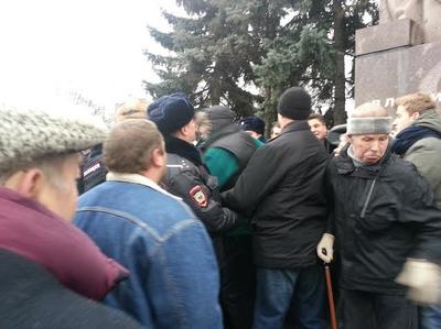 Тем временем к трибуне, которая была организована у подножия памятника Ленину, пытались прорваться крепкие мужчины. Однако полиция взяла трибуну в кольцо и никого, кроме организаторов встречи, туда не пропускала. Одному из юношей удалось сломать флагшток, на котором было знамя КПРФ, однако он тут же был задержан.