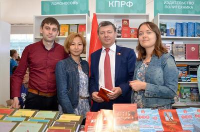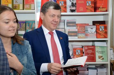 На открытии выставки побывал заместитель Председателя ЦК КПРФ Д.Г. Новиков. Дмитрий Георгиевич посетил павильон КПРФ и ознакомился с новинками разных издательств.
