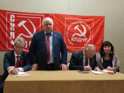 Представителям КПДНР, а также общественным и политическим деятелям ДНР были вручены награды ЦК КПРФ по случаю 140-летия со дня рождения Иосифа Сталина. В свою очередь Борис Литвинов передал российским товарищам марки и конверты с изображением советского вождя.