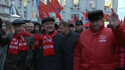 Жители Москвы, Подмосковья и других регионов страны собрались в многотысячном шествии, посвященном этому Великому событию. Колонну демонстрантов возглавили Председатель ЦК КПРФ Геннадий Зюганов, первый заместитель Председателя ЦК КПРФ Иван Мельников, заместитель Председателя ЦК КПРФ Владимир Кашин и другие руководители партии.