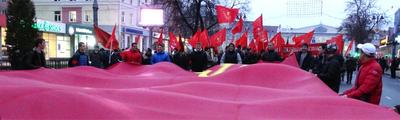 7 ноября 2016 года, несмотря на полное молчание СМИ, коммунисты отметили 99-ю годовщину нашей Революции. Праздник выдался на понедельник. С утра шел дождик. Н,о несмотря на это, курян вышло на главную улицу города – имени Ленина – довольно большое число. И, что самое важное, среди них было много молодежи.