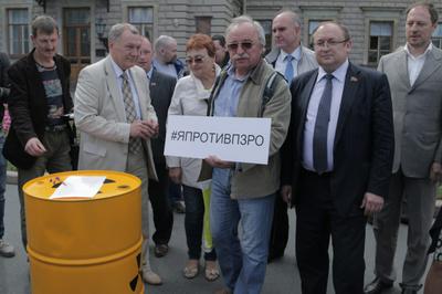 Депутат Государственной Думы Николай Кузьмин привез муляж бочки с ядерными отходами к дверям Законодательного Собрания Санкт-Петербурга. Бочка служила импровизированным столом для подписания декларации, обращенной к президенту России с целью недопущения строительства ядерного могильника на территории Северо-Западного региона. Данная акция предваряла судебное заседание 16 июля по апелляции сторонников захоронения радиоактивных отходов, требующих отказать жителям Соснового Бора в их праве на референдум по данному вопросу.