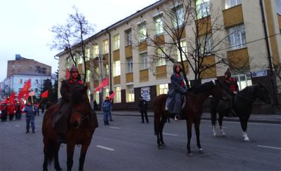 Колонну демонстрантов по традиции открывала конница в красноармейской форме, в будёновках. В первых рядах шли комсомольцы и молодежь, которой ближе алый цвет знамен Коммунистической партии, чем каких-либо других.