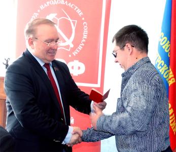 Пленум традиционно начался с вручения партбилетов вновь вступившим в КПРФ. Это были молодые люди из Железнодорожного, Фатежского, Мантуровского райкомов партии.