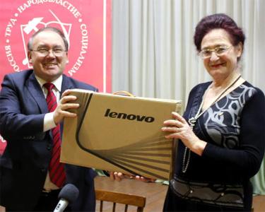 Затем Н.Н. Иванов от имени Курского ОК КПРФ преподнес Щигровскому РК КПРФ ноутбук за отличную организацию работы в 2015 году и достигнутые показатели.