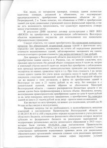 Субсидия из федерального бюджета выделялась на модернизацию региональных систем дошкольного образования. Средства должны были пойти на приобретение в муниципальную собственность зданий, где до 1 октября 2014 года открылись бы группы дошкольного образования. Из федерального бюджета Волгоградской области было определено 991 млн рублей, в том числе, Волгограду - 23 миллиона рублей. По факту областной центр получил 46 миллионов рублей и истратил их на покупку зданий по улице Петроградской 2а. Как отмечает депутат Госдумы Николай Арефьев, приобретались здания без конкурса, без обязательной независимой оценки, а цену фактически определил сам продавец. При этом, на момент проверки КСП (02.10.2014) детсад не был введен в эксплуатацию. Группы для детей там не открыты до сегодняшнего дня (!).