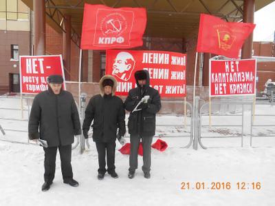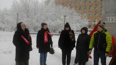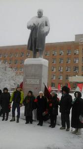 Главную площадь города Новый Уренгой, неофициальной газовой столицы России, коммунисты украсили флагами КПРФ и ЛКСМ, а также лозунгами "Ленин жил! Ленин жив! Ленин будет жить!", "Нет капитализма - нет кризиса!" и "Нет росту цен и тарифов!". Граждане выразили одобрение лозунгам, с которыми новоуренгойские коммунисты вышли на массовое общественно-политическое мероприятие. Несмотря на неблагоприятные погодные условия, сильный ветер и мороз, в проведении пикета приняли участие председатель городского Совета ВОВ А.Ф. Алешкин и его заместитель В.Г. Николенко.