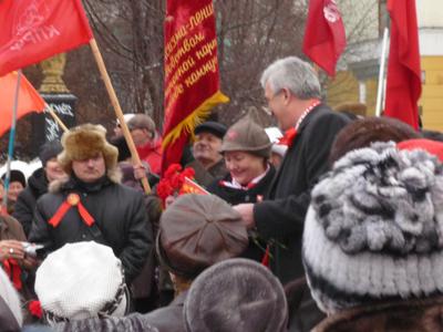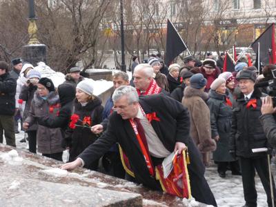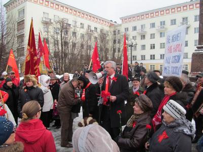 Поздравив присутствующих с праздником, лидер заполярных коммунистов Геннадий Степахно отметил: «К сожалению, сегодня наша страна находится практически на грани катастрофы. На следующий год мы в Мурманской области будем вновь стоять с протянутой рукой перед федеральным правительством: отдайте нам деньги, которые вы забрали у наших предприятий и передали олигархам.