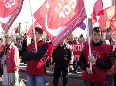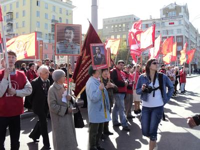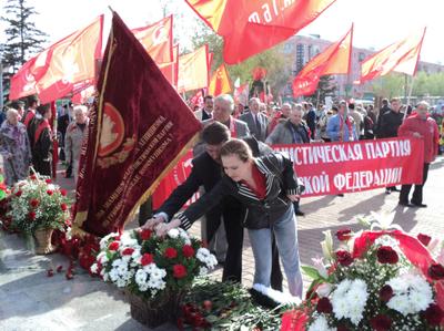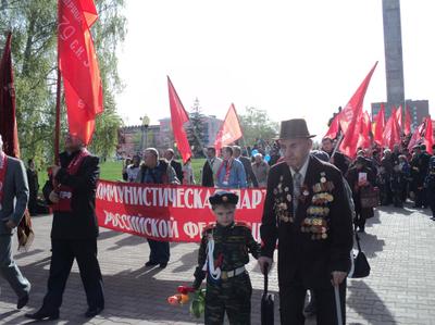 На пл. Советов коммунисты приняли участие в общегородском митинге. Колона КПРФ стояла с баннерами: «Сталин! КПРФ! Победа!» и «Дети войны».