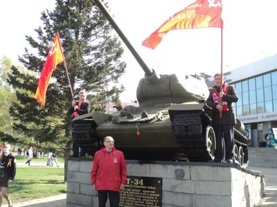 9 мая барнаульские коммунисты с 9-00 до 12-00провели пикет возле символа Великой Отечественной войны – легендарного танка Т- 34, который входит в комплекс Мемориала Славы.