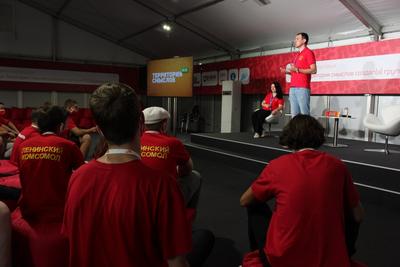 Программа второго дня пребывания делегации Ленинского комсомола на Всероссийском молодежном образовательном форуме "Территория смыслов" включала в себя встречу руководства Центрального Комитета с активом.