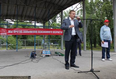 Абаза. В этом небольшом отдалённом городке на юге республики 27 июля состоялся уже второй митинг против планов правительства повысить пенсионный возраст. Перед собравшимися выступил первый секретарь Хакасского рескома КПРФ, кандидат на должность главы республики Валентин Коновалов и кандидат в депутаты Верховного Совета Хакасии Максим Аверьянов. Но больше всего абазинцев поразил своим выступлением член «Единой России», мужчина публично признался, что ему стыдно за коллег по партии из Госдумы, и он намерен порвать в клочья свой партбилет.