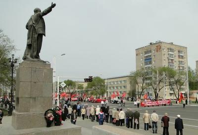 Около 600 человек с красными флагами и транспарантами в сопровождении украшенных автомобилей прошли по центральной улице Благовещенска. Маршрут демонстрантов пролегал от площади Победы до площади Ленина.