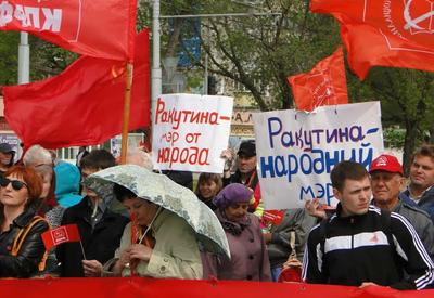 К этому времени место у микрофона занял ещё один коммунист, оператор предприятия коммунальной сферы Владимир Рокосей. После его обращения к участникам митинга слово взяла кандидат от КПРФ на выдвижение в мэры Благовещенска Татьяна Ракутина. Она поблагодарила товарищей за поддержку и отметила основные городские проблемы, подчеркнув, что только коммунисты смогут избавиться от посредников в ЖКХ, восстановить городские дороги и ликвидировать очереди в больницы и детские сады. Во время её выступления участники митинга подняли плакаты: «Ракутину – в мэры», «Ракутина – народный мэр».