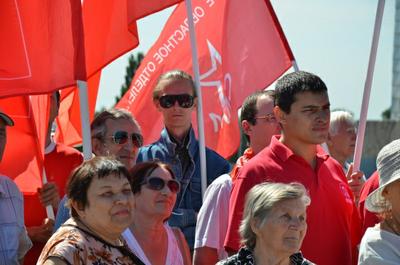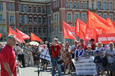Сегодня, 27 июля, на предварительно огороженной «заботливыми» полицейскими центральной площади города Ростова-на-Дону - Театральной, не смотря на дотошный досмотр вещей участников мероприятия сотрудниками МВД, к моменту начала митинга несколько сотен ростовчан и представителей Мясниковского района развернули плакаты и красные знамена.