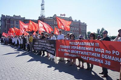 В резолюции, зачитанной секретарем Ростовского обкома КПРФ, кандидатом в депутаты ЗакСобрания РО Игорем Нестеренко, участники митинга заявили решительный протест против циничной социально-экономической политики властей и потребовали отменить решения о повышении тарифов на энергоносители и услуги ЖКХ, обеспечить оплату только фактически полученных жильцами услуг, установить приборы учета потребления тепла и воды за счет бюджета, а не населения, отменить плату с жильцов за «места общего пользования».