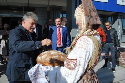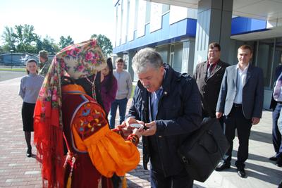 В аэропорту Абакана делегацию из Москвы встречали коммунисты и комсомольцы Хакасии во главе с первым секретарём рескома КПРФ, депутатом Абаканского горсовета, В.О.Коноваловым. Столичным гостям преподнесли русские хлеб-соль и пиалу с традиционным хакасским напитком айраном.