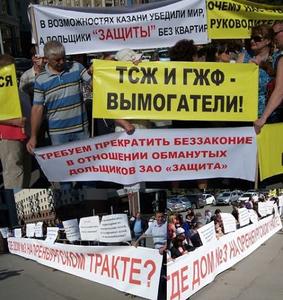 На очередной пикет пришли сегодня обманутые дольщики ЗАО «Защита». Напомним, чтобы получить долгожданную квартиру им нужно почему-то доплатить еще несколько десятков тысяч рублей за квадратный метр, хотя за это жилье они давно рассчитались.