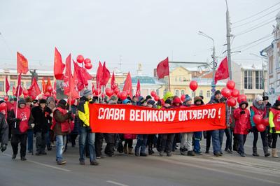 Накануне 99-летия Великой Октябрьской социалистической революции томские коммунисты провели шествие и митинг