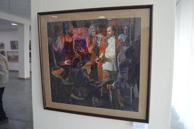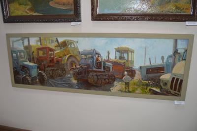 Выставка в зале музея "Город" (зал до недавнего времени был выставочным залом Союза художников) очень ярко и красочно показывает все противоречия нашего времени. Например, портрет Петра Столыпина соседствует с картиной, посвященной солдатам-победителям 1945 года. Напротив Петра Аркадьевича - картина, изображающая "кладбище" тракторов, которое с опаской разглядывает ребенок. Сельские труженики Алтая, разумеется, тоже представлены. И представлены на вполне "живых" тракторах. При первом беглом взгляде на такие работы можно подумать, что эти картины выполнены во времена СССР, которые в творчестве обозначали тогда понятием "социалистический реализм".