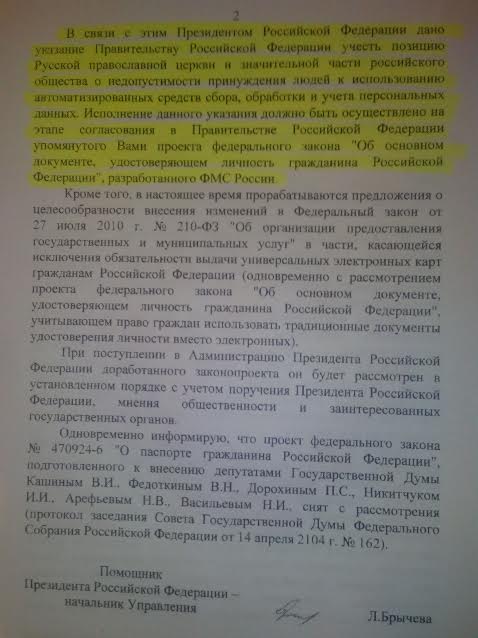 «Открываете регламент (ныне расформированной) ФМС – там все написано. Там сказано: «личный код является кодом человека, находящимся с 29 по 42 строки на машиносчитываемой записи». Так ведь вы сейчас – не ФМС, вы имеете право выпускать новые приказы. Отмените или измените решение Константина Ромодановского, который был освобожден от должности из-за злоупотреблений на службе. Меня в Севастополе лишили льгот по ЖКУ (из-за отказа принимать эти документы). Сделайте что-нибудь уже…», – заявила глава «Родительского отпора» в Крыму Елена Петрова.