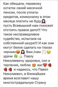 «Павел Николаевич, желаю ВАМ большой удачи! Победа будет за нами! Мне хотелось бы, чтобы наша большая Страна стала таким же райским уголком, как ваш родной Совхоз!!!».