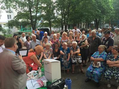 После вступительного слова Сергей Павлович предложил жильцам задать вопросы и передать ему обращения. Собравшиеся жильцы жаловались на неразвитую социальную инфраструктуру в микрорайоне. Например, в районе отсутствует аптека, а поликлиника находится на значительном удалении.