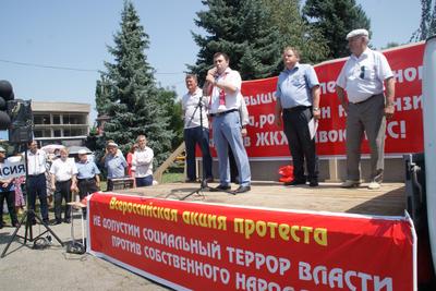 Трибуной митинга, как в славные годы революции послужил грузовой автомобиль. На митинге выступили 17 человек. Приняты четыре резолюции. Вел митинг депутат фракции КПРФ Народного Собрания (Парламента) Карачаево-Черкесской Республики, первый секретарь Черкесского городского комитета КПРФ С.Ф. Ласков. Участники митинга внимательно выслушали все выступления, которые, как одно, были яркими и искренними. И это не удивительно, ведь люди говорили о наболевшем. Митинг то и дело взрывался аплодисментами, его участники скандировали «Позор!» правительству России.