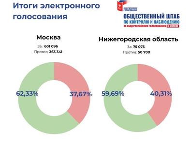 Таким образом, число «электронных голосов» в г. Москве составляет более 20% от всех голосов, поданных москвичами в ходе общероссийского голосования. Явка на электронном голосовании составила 93%.