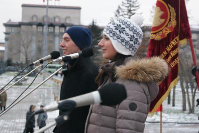 Мы, участники митинга, посвящённого 96-й годовщине Великой Октябрьской социалистической революции, чтим память героев-революционеров, ценим завоевания социализма и дорожим идеалами социальной справедливости.