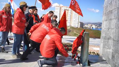На протяжении всего пути нас сопровождали представители Краснодарского краевого комитета КПРФ, члены общественных организаций и движений – в первую очередь, Союза Советских офицеров, а также комсомольцы.