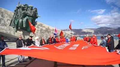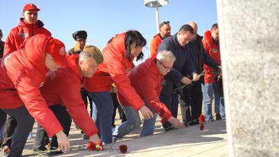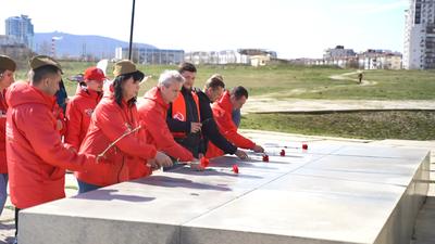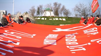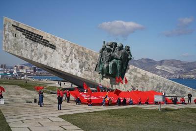 В память о героизме защитников нашей страны на территории плацдарма «Малая земля» в 1982 году был открыт одноименный мемориальный комплекс. Именно здесь участника нашего автопробега возложили к памятнику цветы и венки, а также растянули гигантскую копию Знамени Победы.