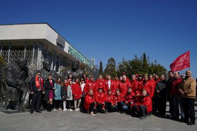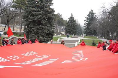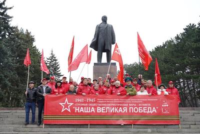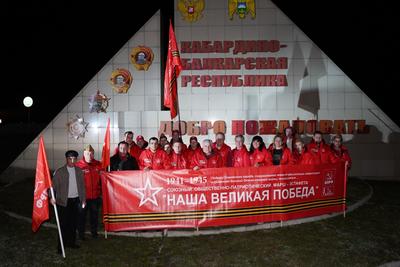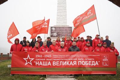 Мы под председательством руководителя Союзного проекта, члена Президиума ЦК КПРФ, секретаря ЦК КПРФ, заместителя Председателя Комитета Государственной Думы по делам СНГ Казбеком Тайсаевым с координаторами, участниками марша-эстафеты и жителями города развернули гигантскую копию Знамени Победы, чтобы еще раз доказать связь наших поколений.