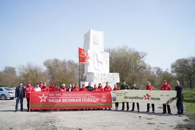Мы возложили цветы к монументу в память о подвиге защитников Эльхотовских ворот, развернули у его подножия копию Знамени Победы, так же как и у памятника Петру Барбашову.