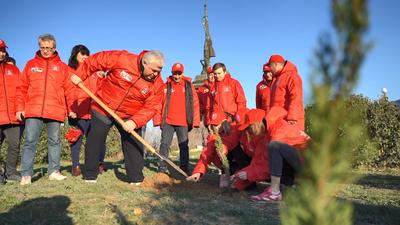 Рядом с монументом было высажены первые саженцы в рамках акции под эгидой КПРФ в Северной Осетии.