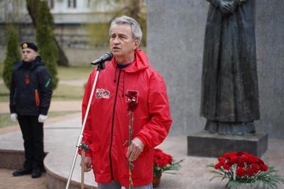 А затем состоялось возложение цветов и разворачивание копии Знамени Победы у Вечного огня, а также митинг, в котором наряду с другими прозвучало выступление председателя Движения в поддержку армии, оборонной промышленности и военной науки генерала-лейтенанта Виктора Соболева.