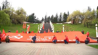 Мероприятие в городе Краснодаре открылось с исполнения гимна Российской Федерации. Мы возложили цветы к памятнику 13 тысячам краснодарцев – жертвам фашистского террора в Чистяковской роще и почтили память погибших минутой молчания. После торжественного митинга развернули гигантскую копию Знамени Победы во главе с первым секретарем Краснодарского краевого отделения КПРФ, членом ЦК КПРФ, депутатом Государственной Думы фракции КПРФ Н.И. Осадчим и с участием депутатов фракций КПРФ в Законодательном Собрании Краснодарского края, в Законодательном Собрании города Краснодара и партийного актива.
