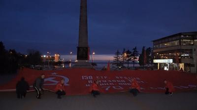 У Мемориала, посвященного воинам, умершим в госпиталях Сочи от ран, полученных в сражениях Великой Отечественной войны, участники автомарша развернули величественное Знамя Победы. Это место захоронения более 2000 воинов Советской Армии, умерших в госпиталях Сочи от тяжелых ран. Здесь также по традиции произвели забор земли с памятного места.