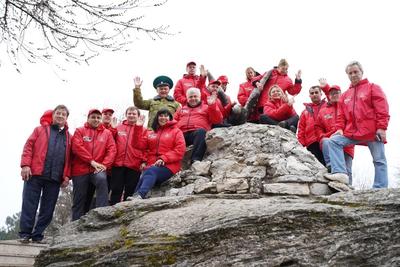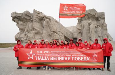 На всем пути следования маршрута прохожие приветствовали нашу колонну. На границах регионов нас встречали не только готовые присоединиться к нам автомобили с атрибутикой автомарша, но и большие группы активистов партии, комсомола, общественных организаций с традиционными национальными угощениями, а порой и с небольшой концертной программой. Мы не просто передавали эстафету Памяти. Вместе с представителями региональных партийных организаций мы возлагали цветы на места братских захоронений павших и к монументам, воздвигнутым в их честь. Собирали горсти священной земли, политой их кровью, в нашу общую капсулу, которая будет захоронена в Парке Победы на Поклонной горе как послание потомкам.Разворачивали гигантскую – площадью 200 квадратных метров – копию Знамени Победы.