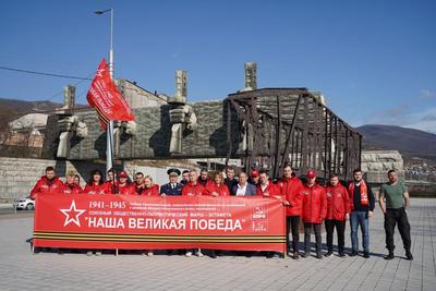 По пути следования участники нашего автопробега возложили цветы и венки, а также растянули гигантскую копию Знамени Победы, к мемориальным комплексам «Малая земля» «Рубеж обороны» в память о героизме защитников нашей страны.